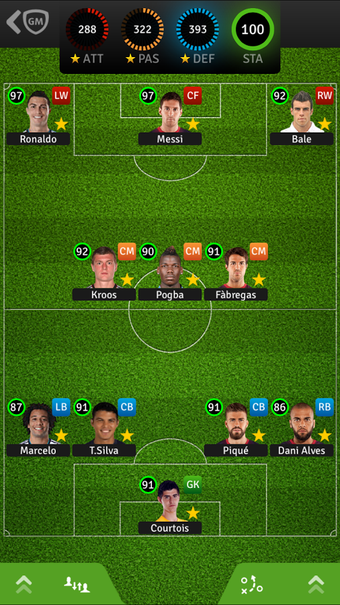 El juego tiene una gran ventaja respecto a otros mánagers de la competencia: todos los jugadores son reales, por lo que tu sueño de fichar a los cracks del fútbol, con paciencia se hará realidad. Eso sí, no los vas a poder ver en acción, ya que Golden Manager no cuenta con la opción de realizar acciones durante los partidos.